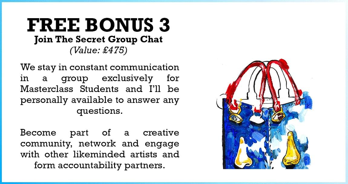As soon as you've signed up I will send you an onboarding email with the access details and links, and you'll be added to the secret group chat, which you will be able to chat to everyone, help each other out and introduce yourself and also follow each other, support each other!