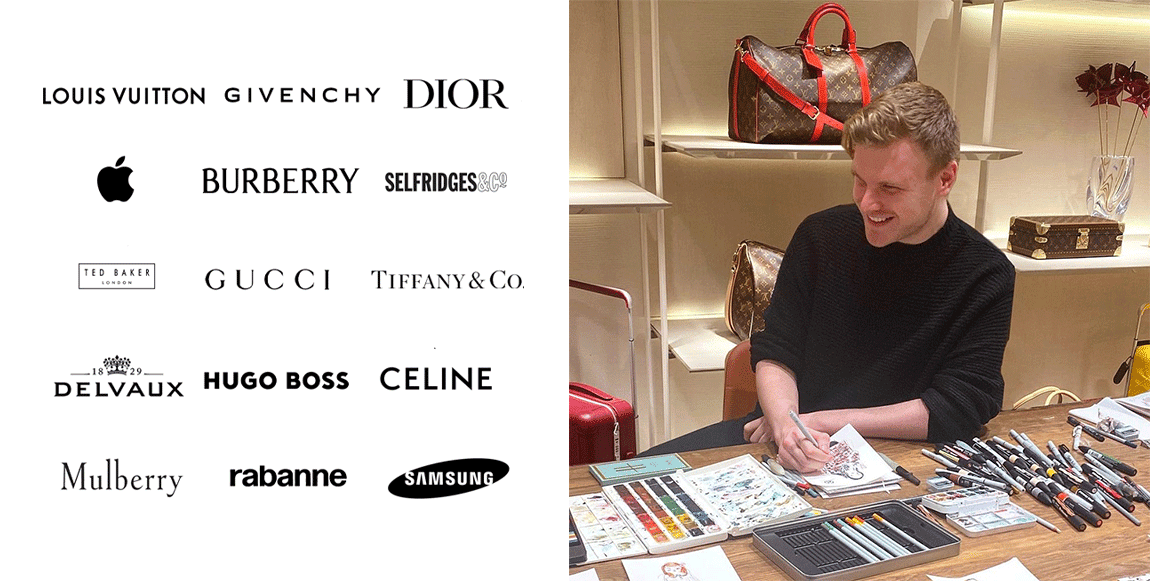 And in these courses I share everything I've been actioning to become a full time artist, with a social following of over 45,000 and clients such as Louis Vuitton, Christian Dior, Gucci, Givenchy, Burberry, Tiffany & Co and Hugo Boss.