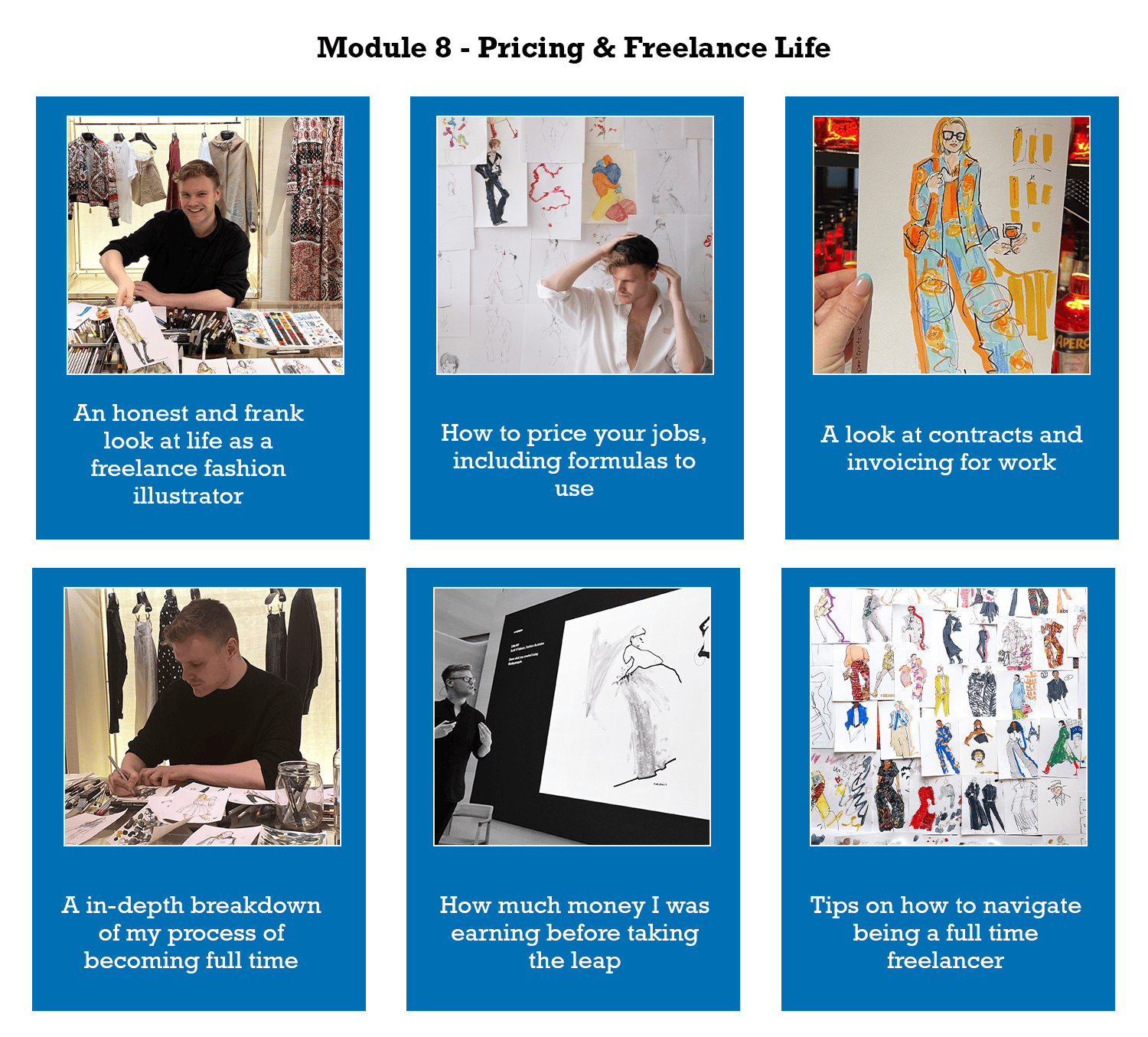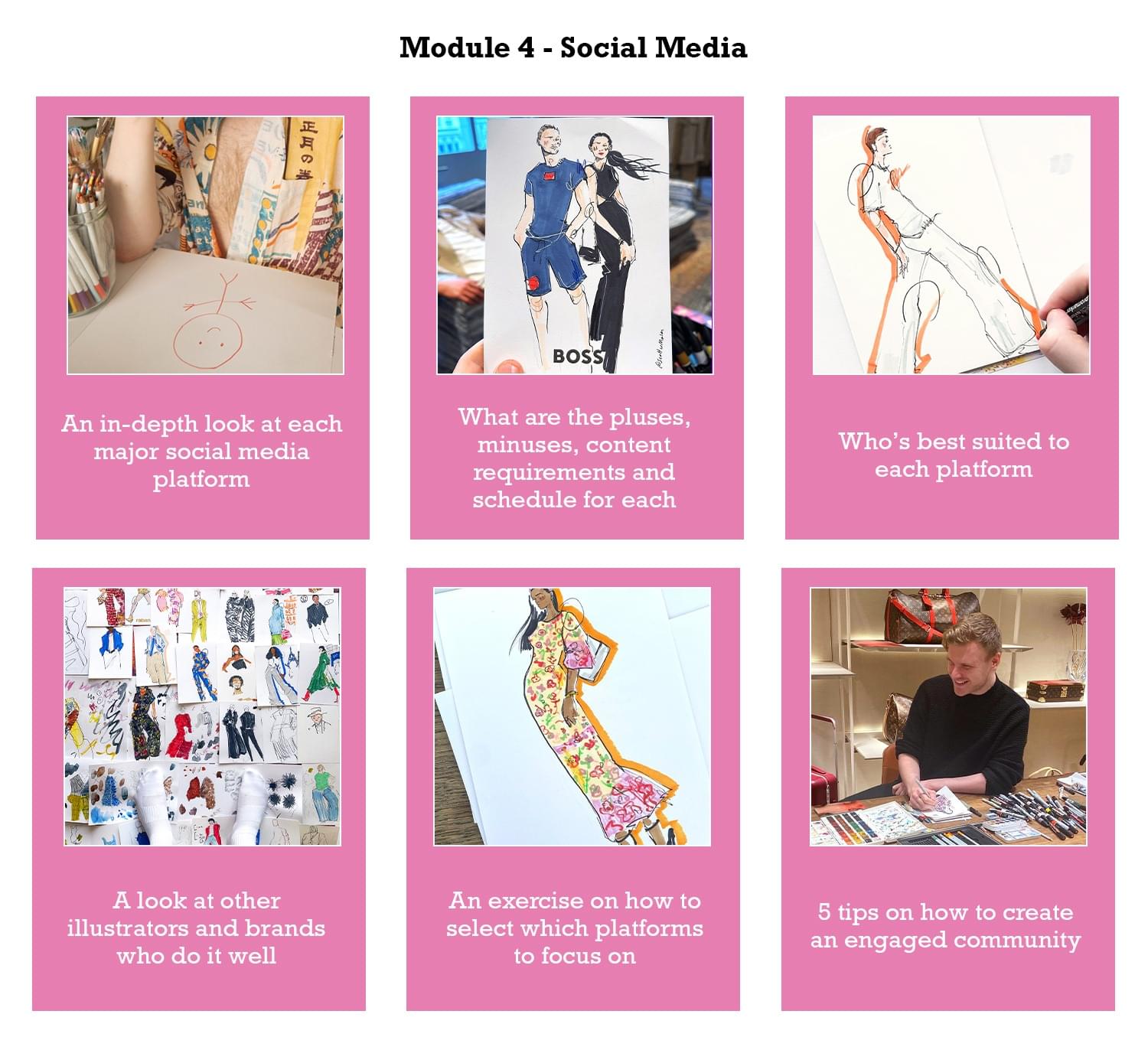 Fundamentally this is a creative career course so you'll be learning a lot of marketing and self promotion skills just taught from the lens of fashion illustration.