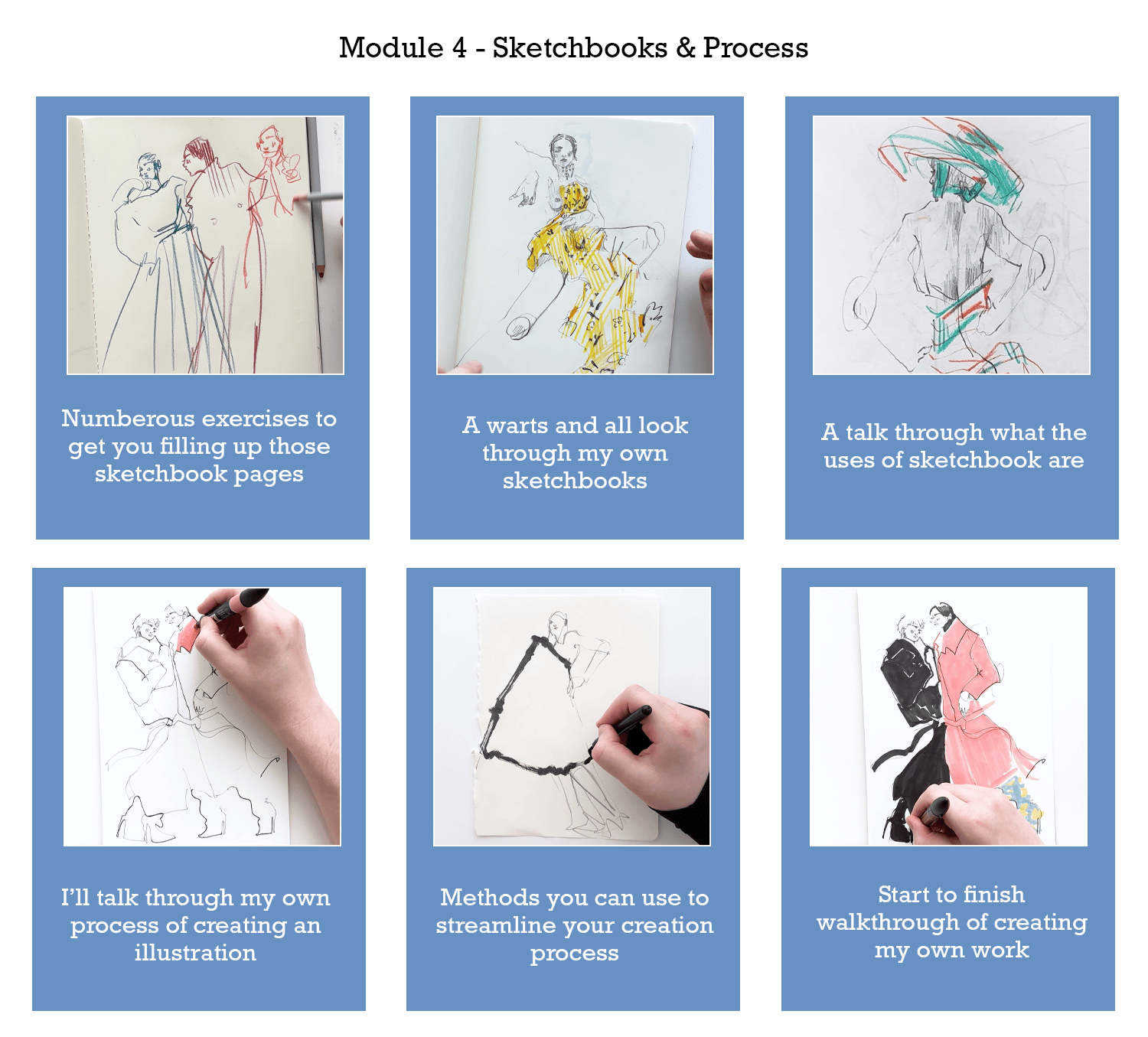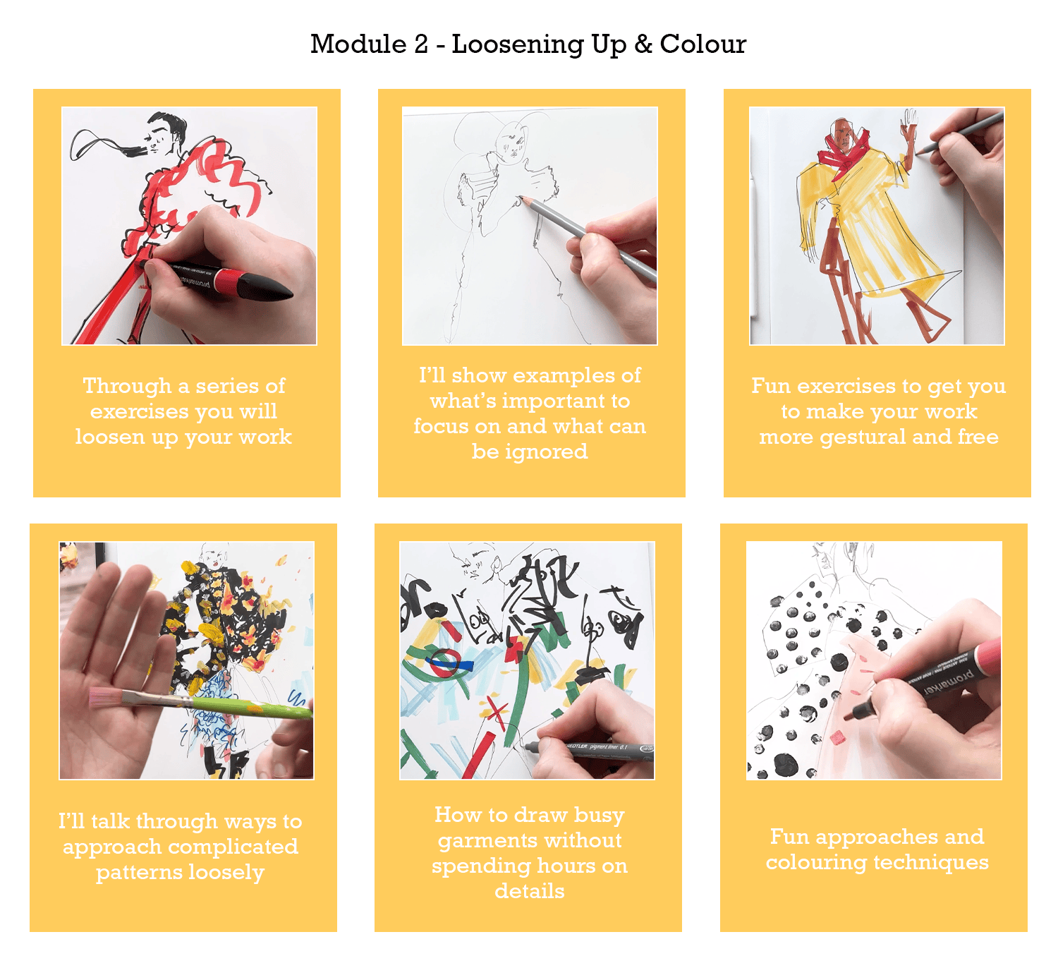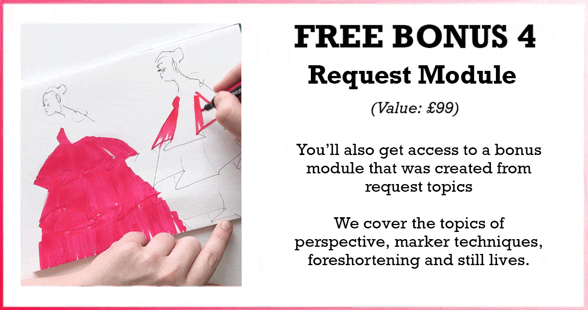 What if I’m new to Fashion Illustration?The course is open to all skill levels, we do cover basic proportion and anatomy in the first module and all feedback is