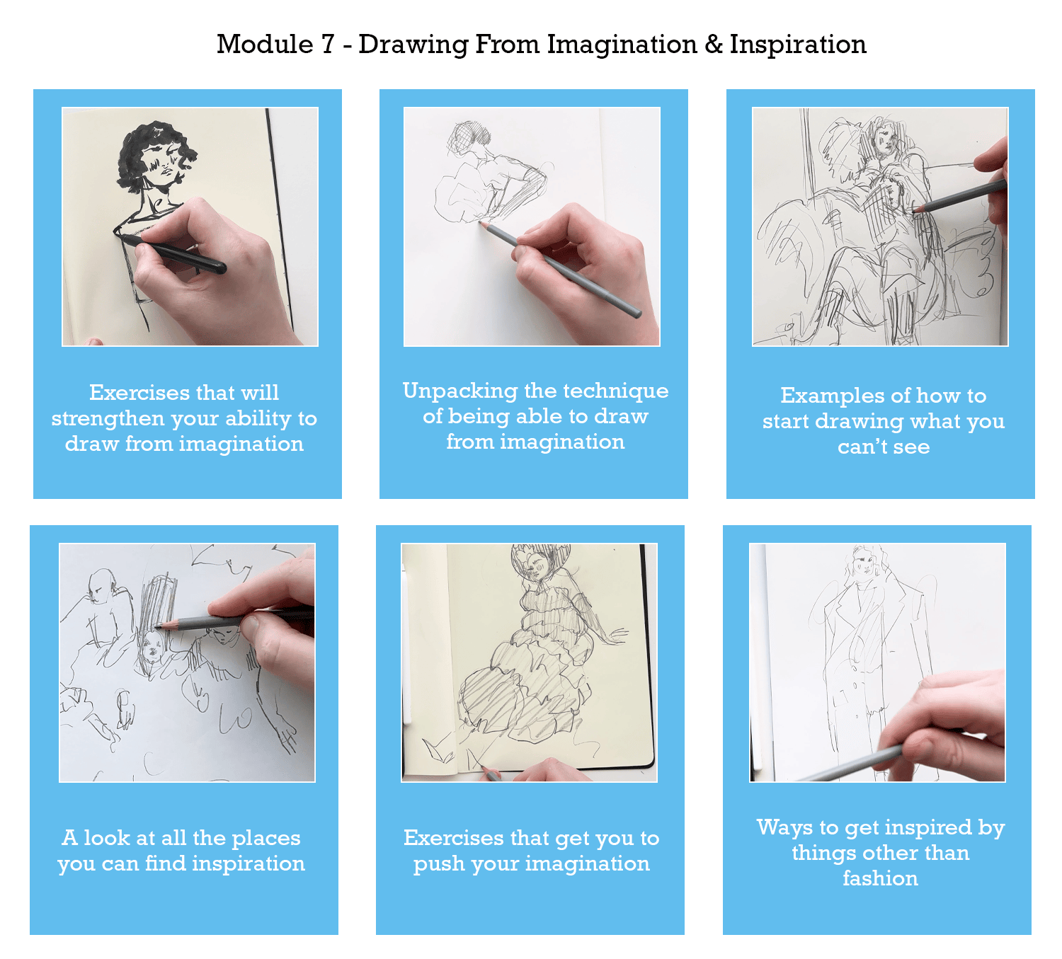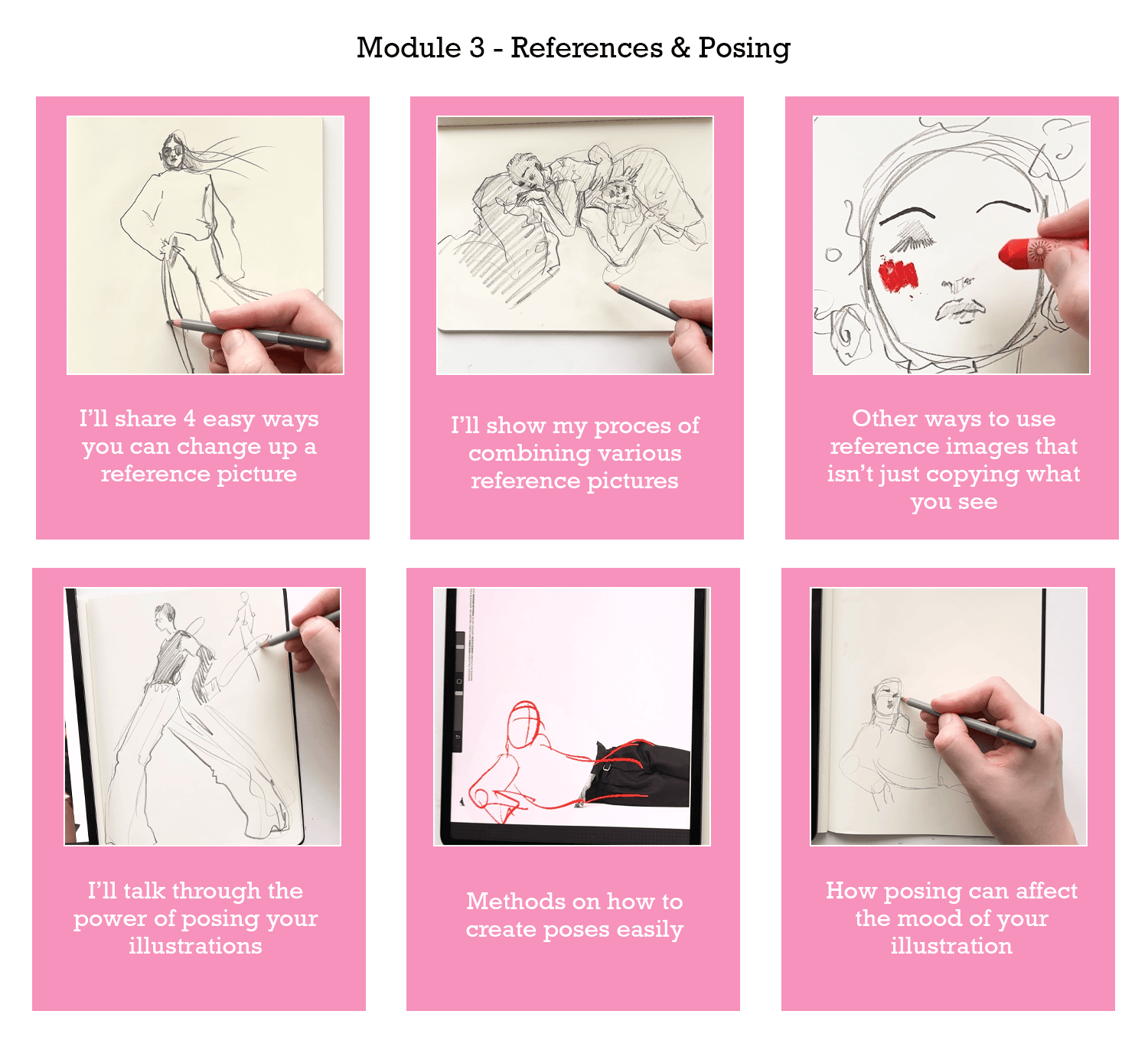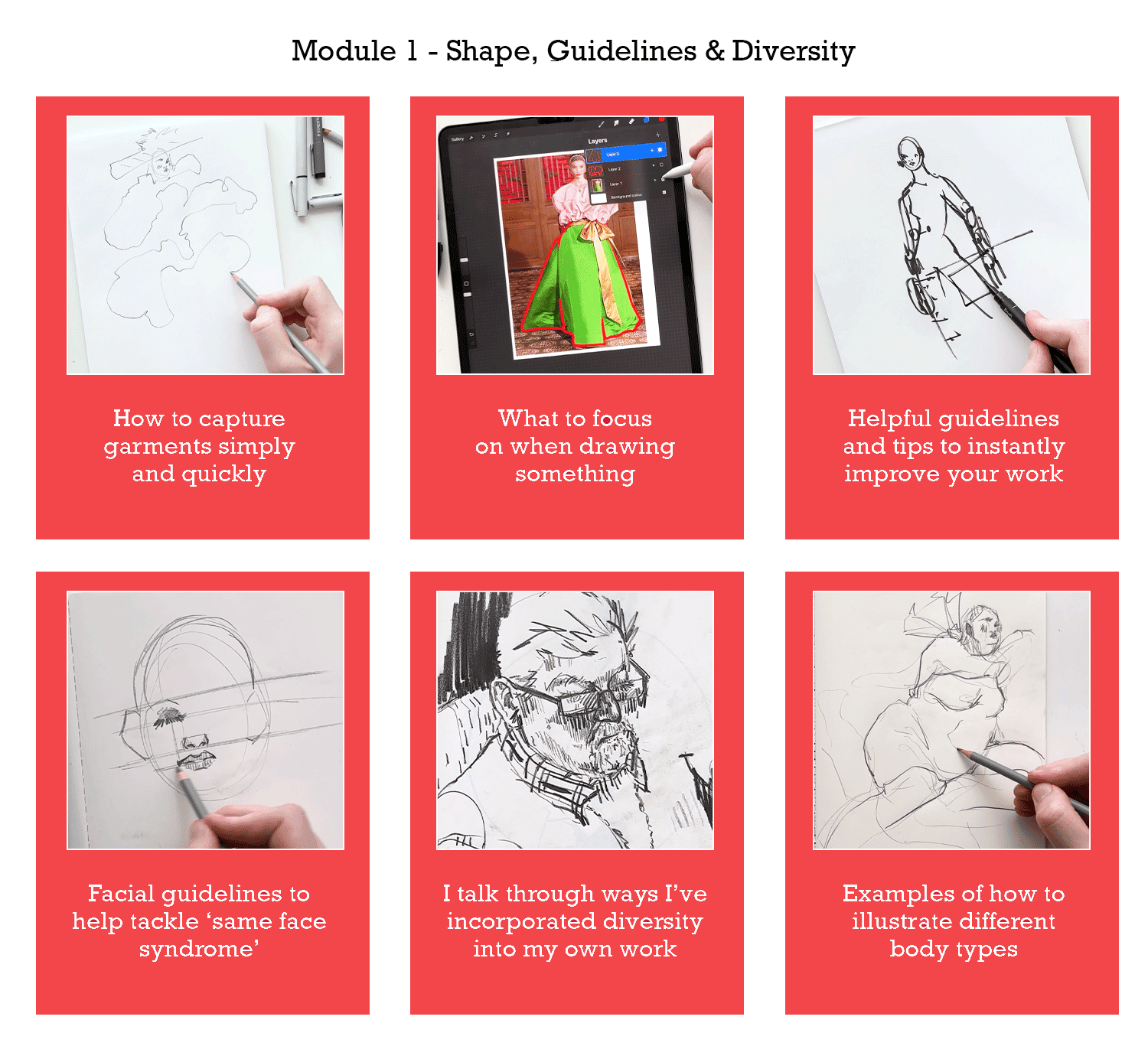 What if I’m new to Fashion Illustration?The course is open to all skill levels, we do cover basic proportion and anatomy in the first module and all feedback is